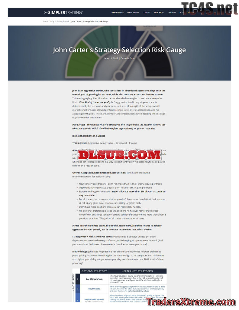 John Carters Strategy Selection Risk Gauge - JPG Image File