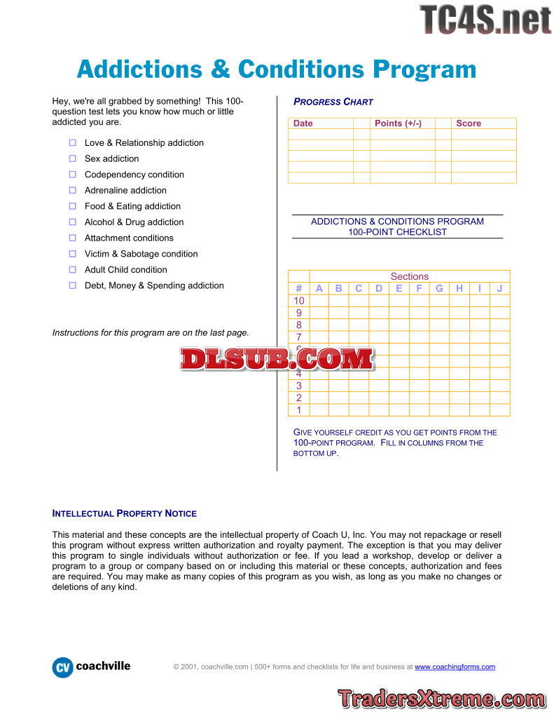 Addictions And Conditions Program 100 Items To Test For Addiction Condition - JPG Image File