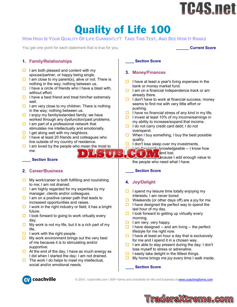 Quality Of Life 100 Questions To Determine Your Current Quality Of Life - JPG Image File