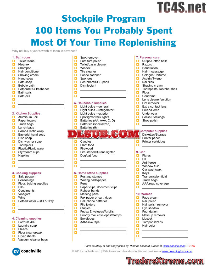 Stockpile Program 100 Items You Probably Spent Most Of Your Time Replenishing - JPG Image File