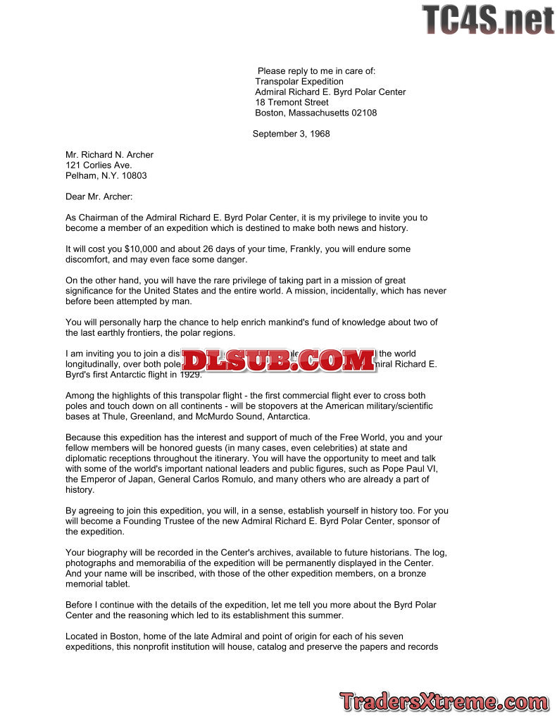 Admiral Byrd Expeditionbestletter - JPG Image File