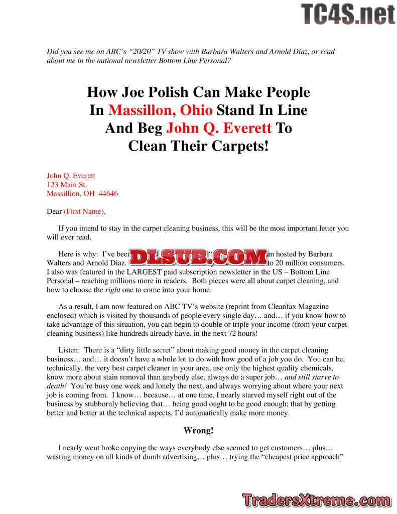 Joe Polishs Gary Halbert Million Dollar Sales Letter - JPG Image File