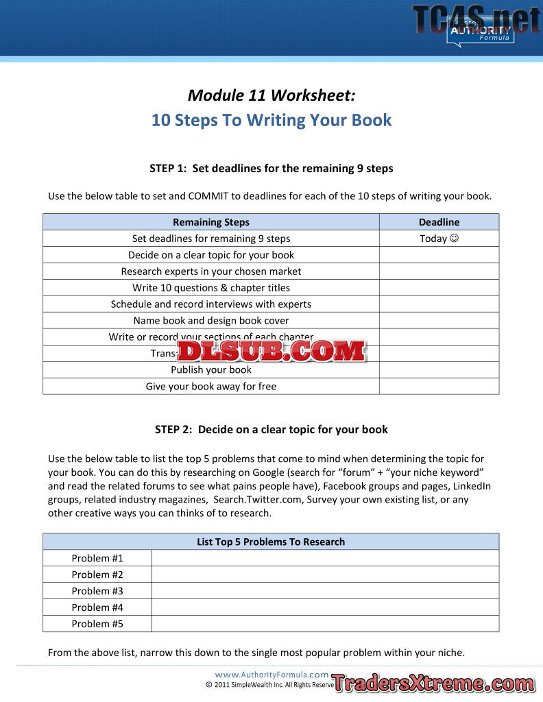Ttaf 11 04 10 Steps To Writing Your First Book Worksheet - JPG Image File