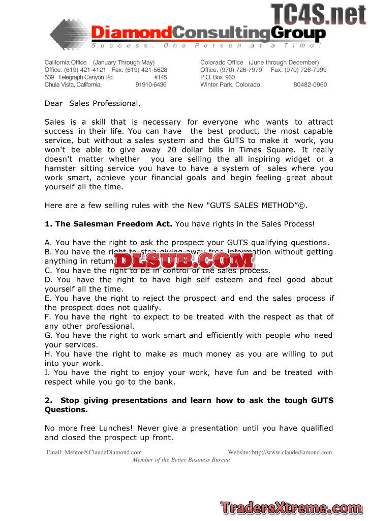 Claude Diamond G U T S Sales Training System Usd 595