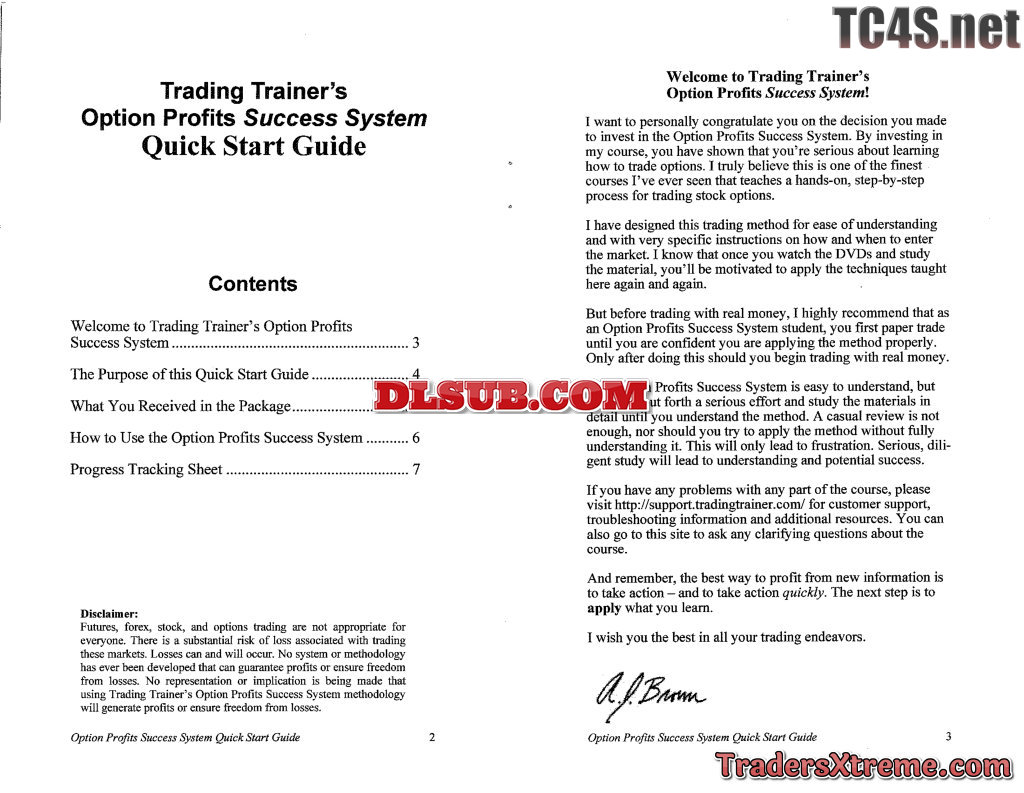 Trading Trainers Option Profits Success System Quick Start Guide - JPG Image File