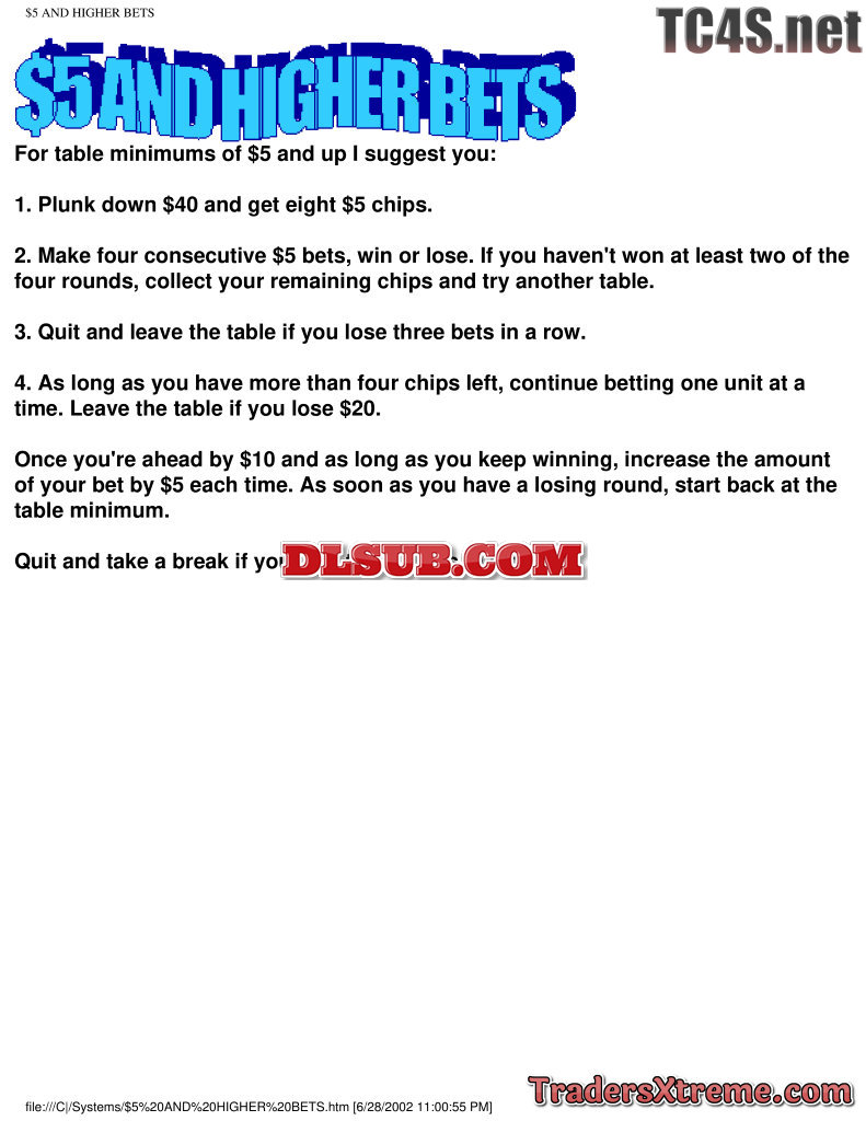 Usd 5 And Higher Bets - JPG Image File
