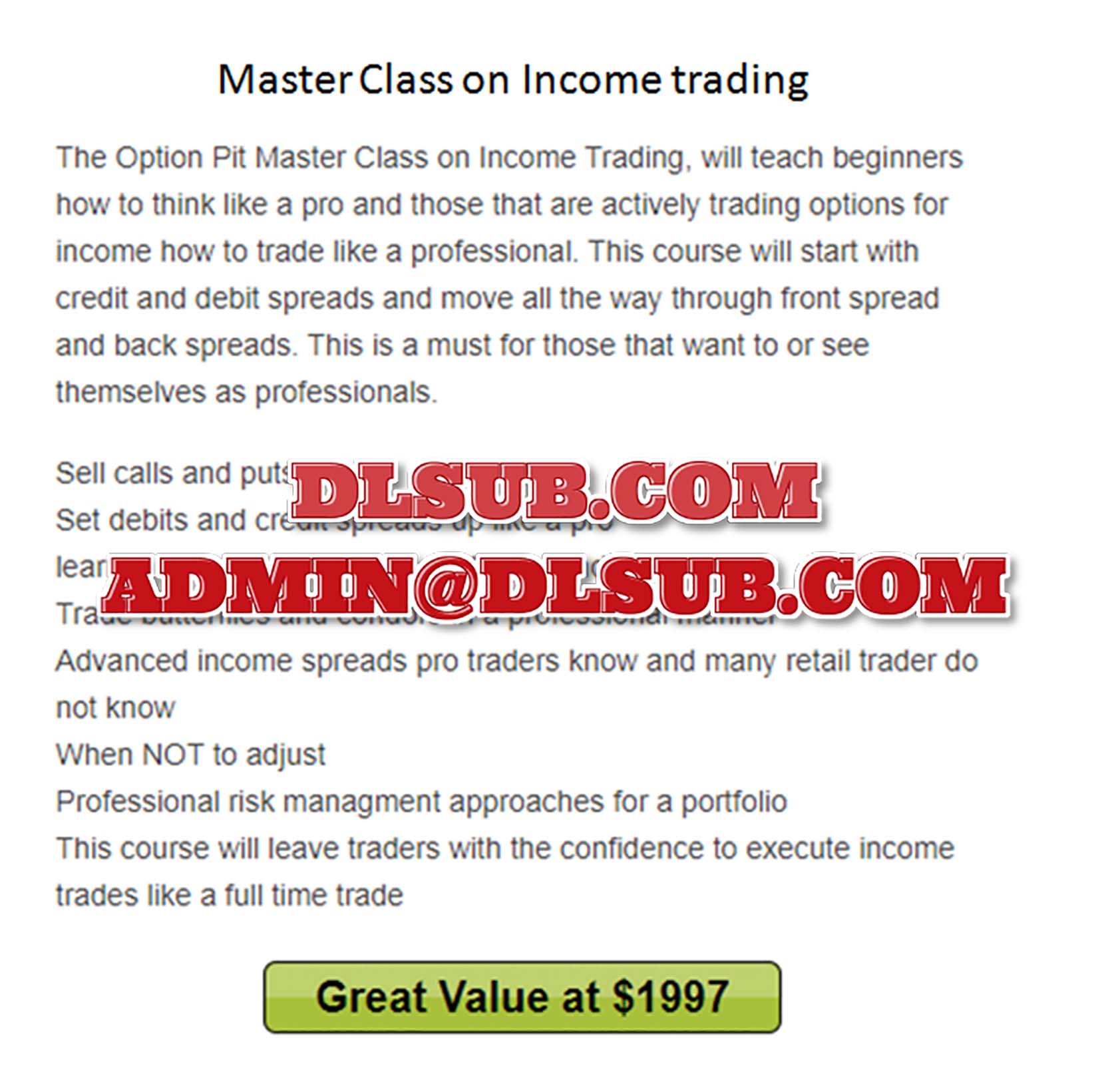 Option Pit Master Class Income Trading - JPG Image File