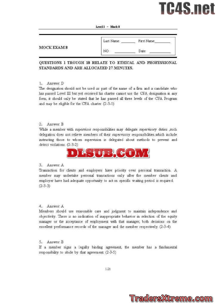 Cfa L1mock 120q Answers - JPG Image File