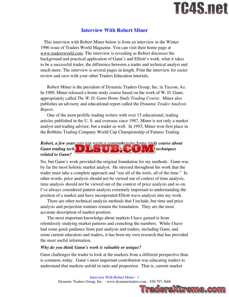 Trader Education Tutorial By Robert Miner
