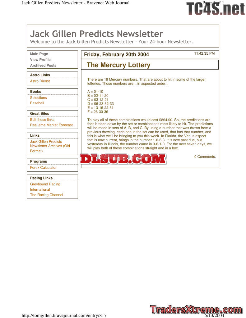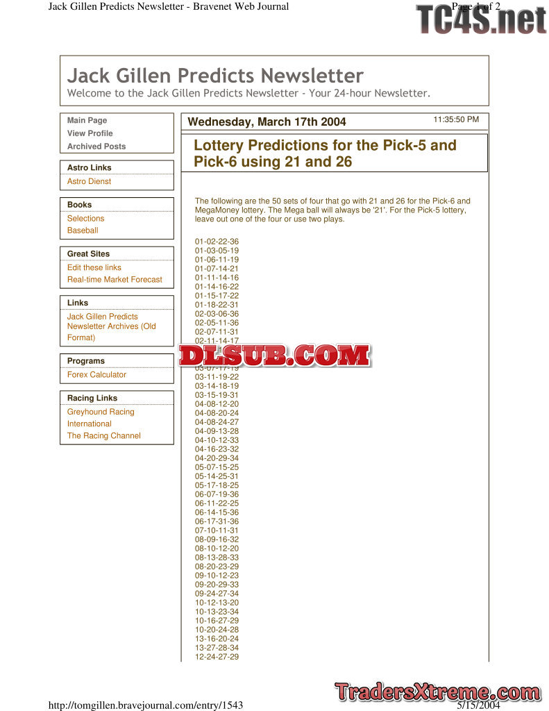 Jack Gillen Lottery Predictions