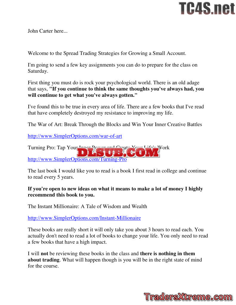 John Carter Simpleroptions Spread Trading Strategies For Growing A Small Account Dvd Usd 397 Usd 78