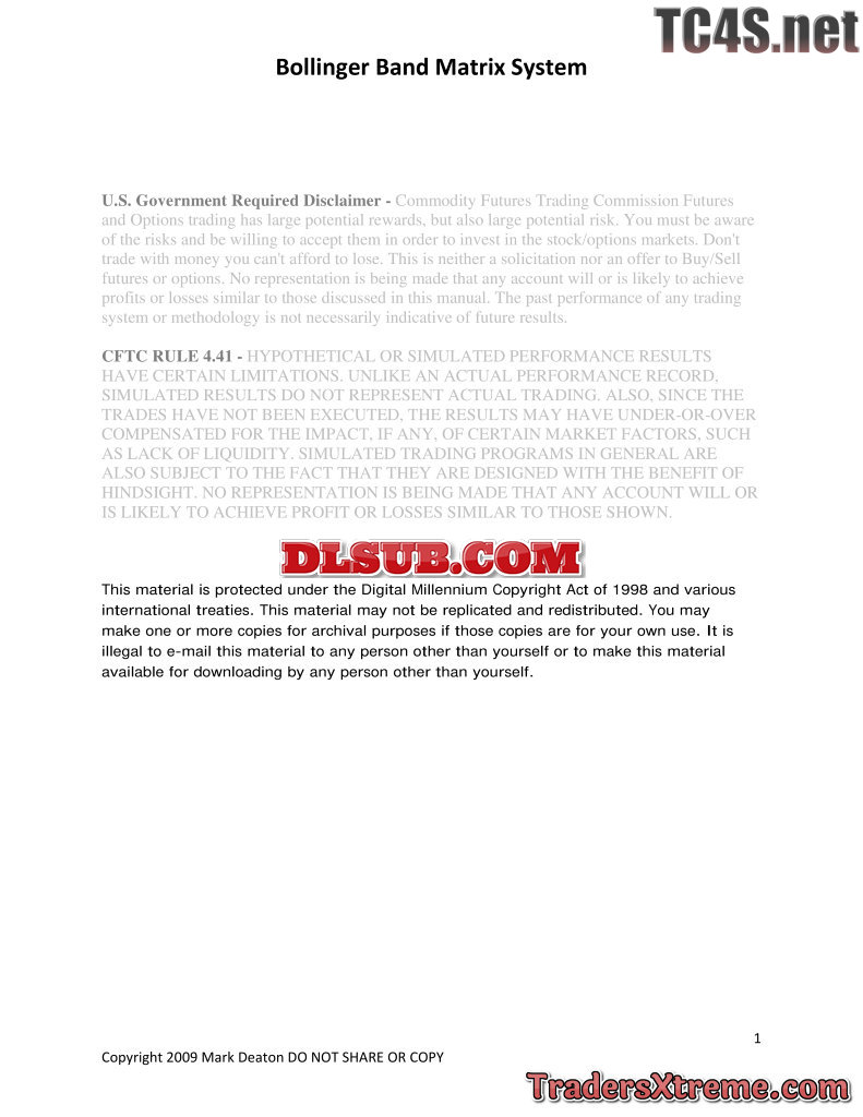 Mark Deaton Bollinger Band Matrix System Renegadetrader