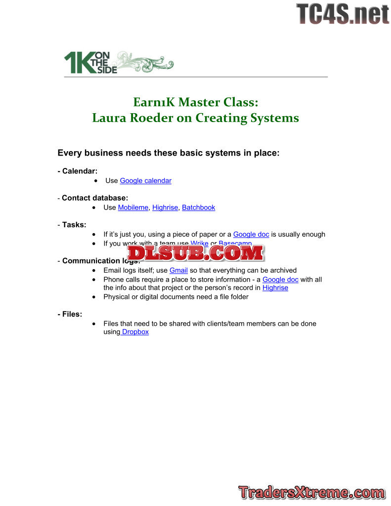 Laura Roeder Systems Handout - JPG Image File