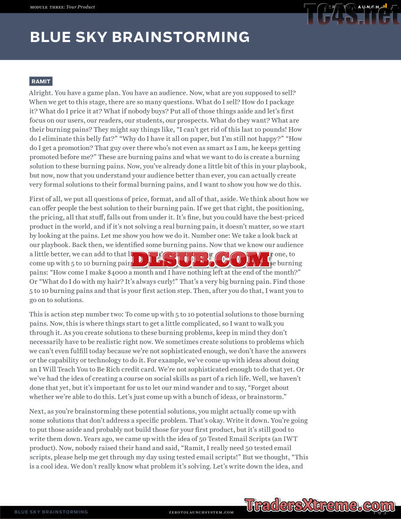 Zerotolaunch Products Transcript Blue Sky Brainstorming - JPG Image File
