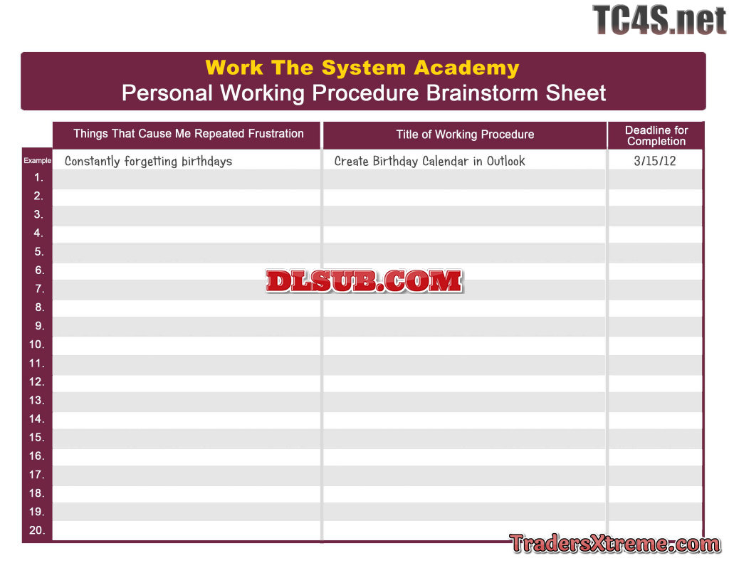 Personal Working Procedure Brainstorm - JPG Image File