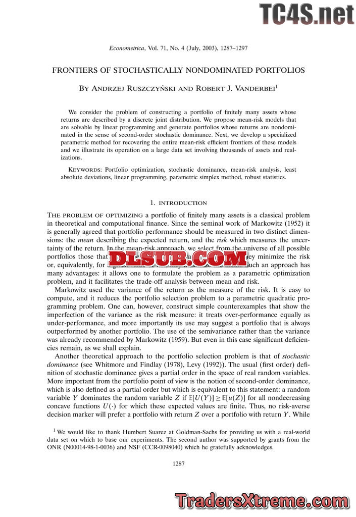Frontiers Of Stochastically Nondominated Portfolios - JPG Image File