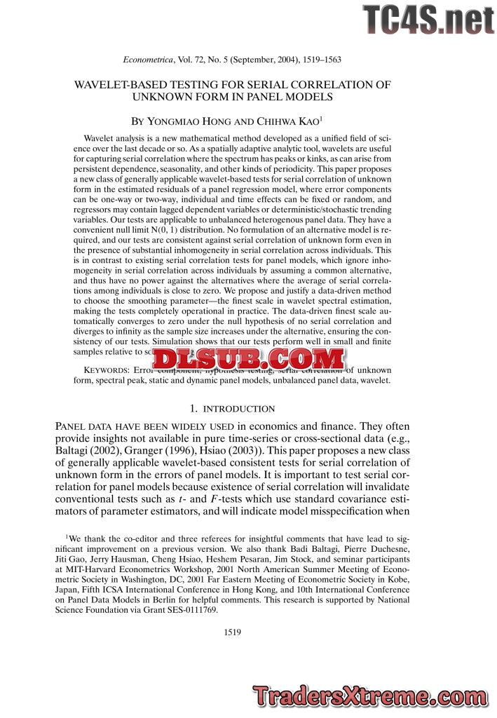 Wavelet Based Testing For Serial Correlation Of Unknown Form In Panel Models - JPG Image File