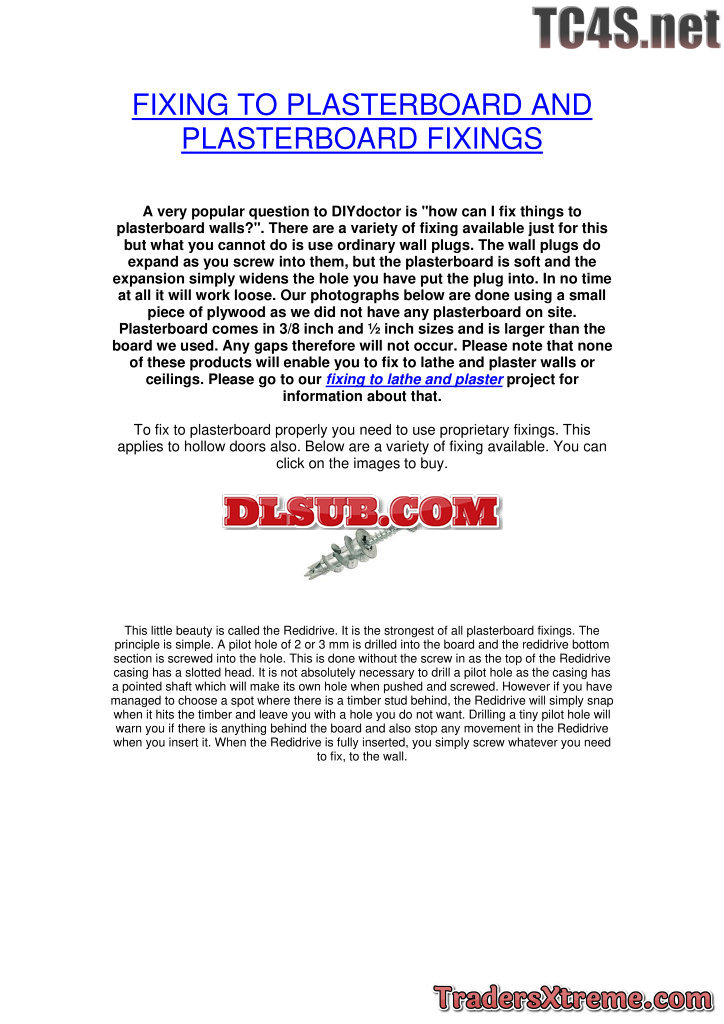 Fixing To Plasterboard And Plasterboard Fixings - JPG Image File