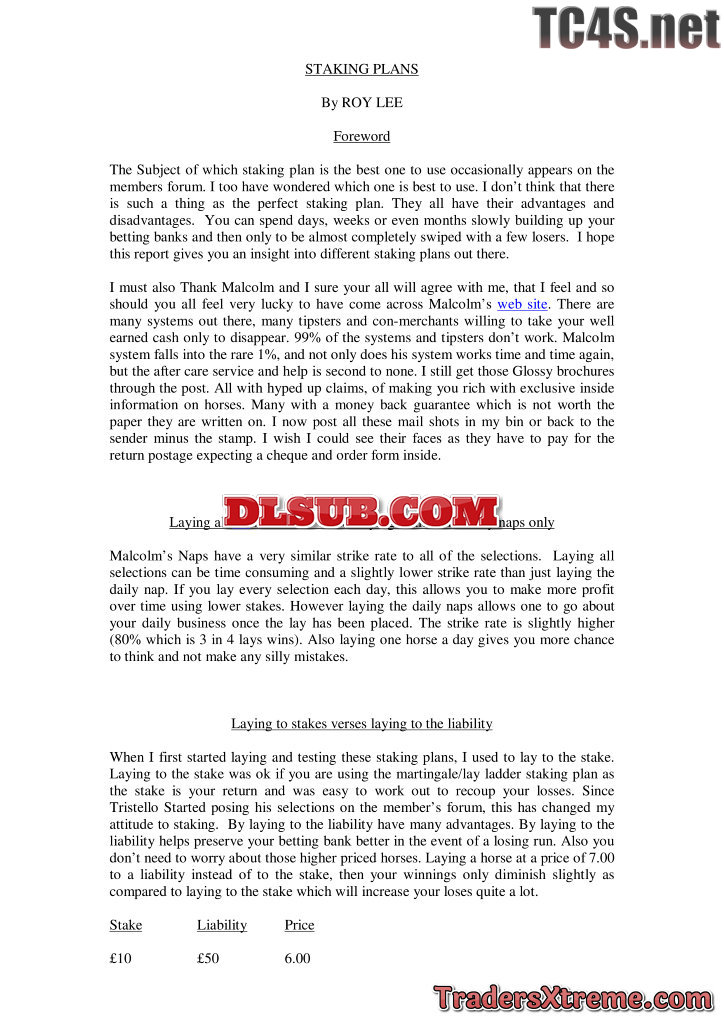 Money Horse Racing Roys Staking Plans - JPG Image File