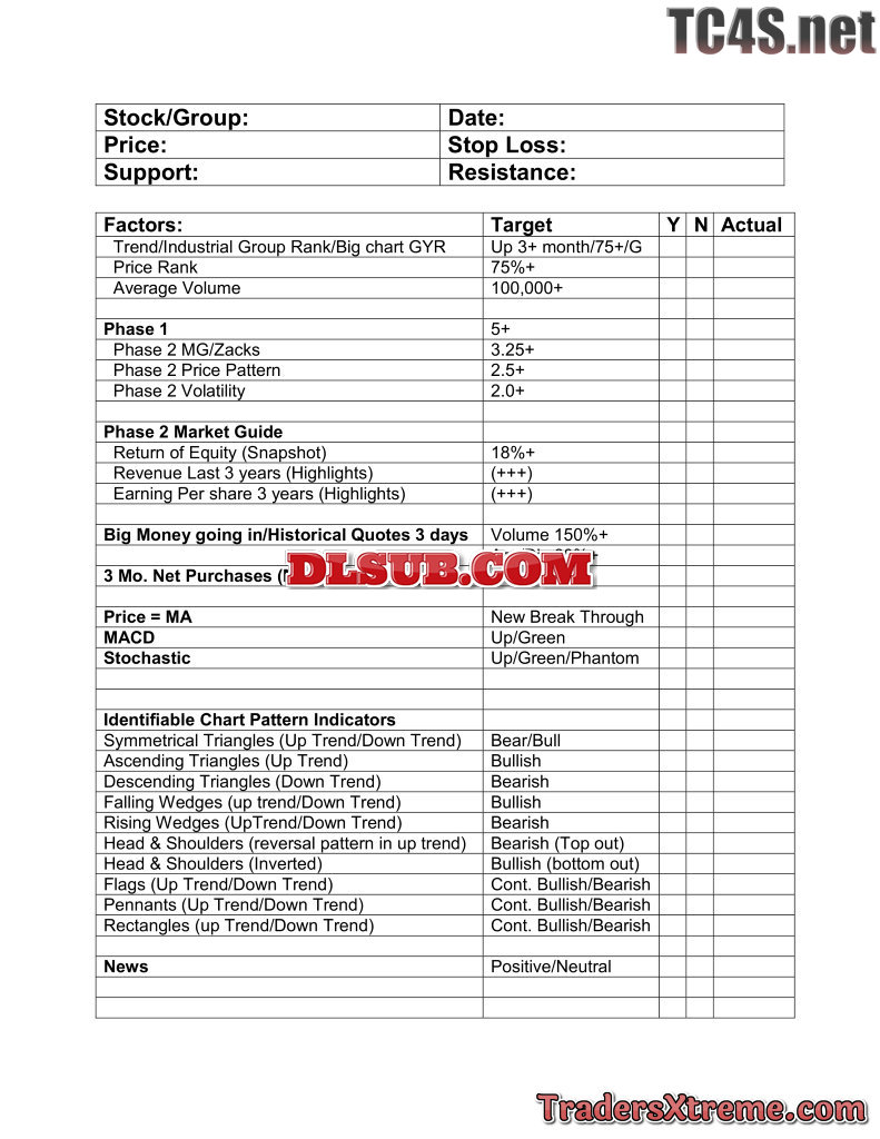 Trading Checklist - JPG Image File