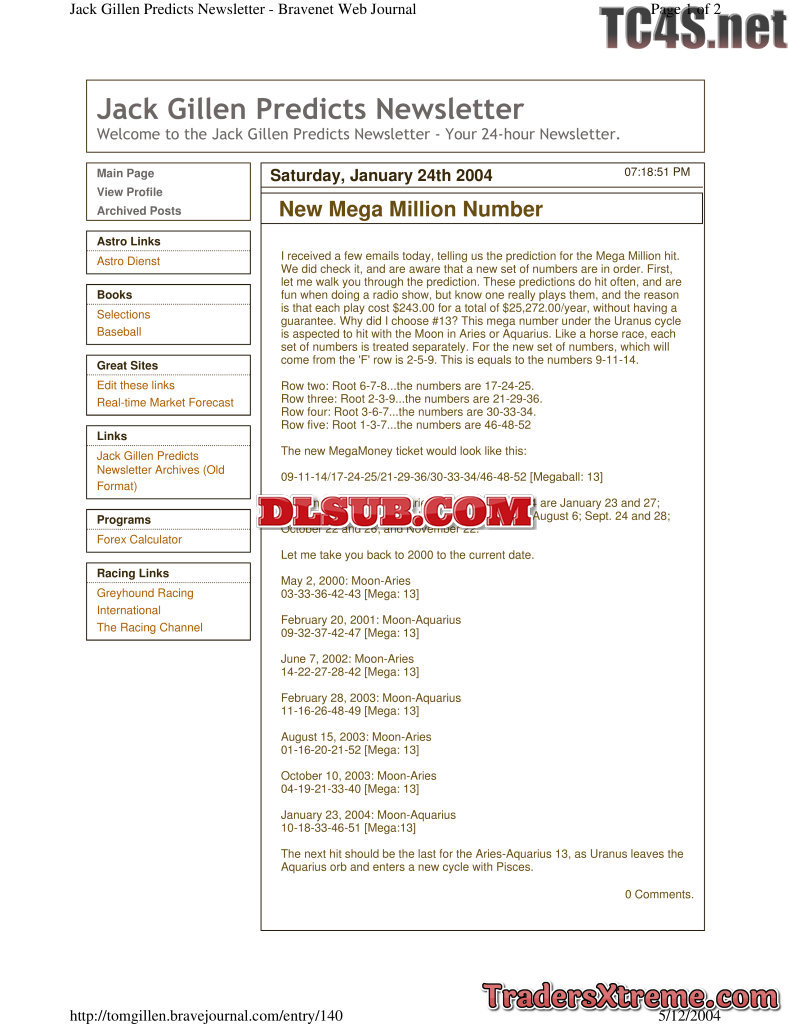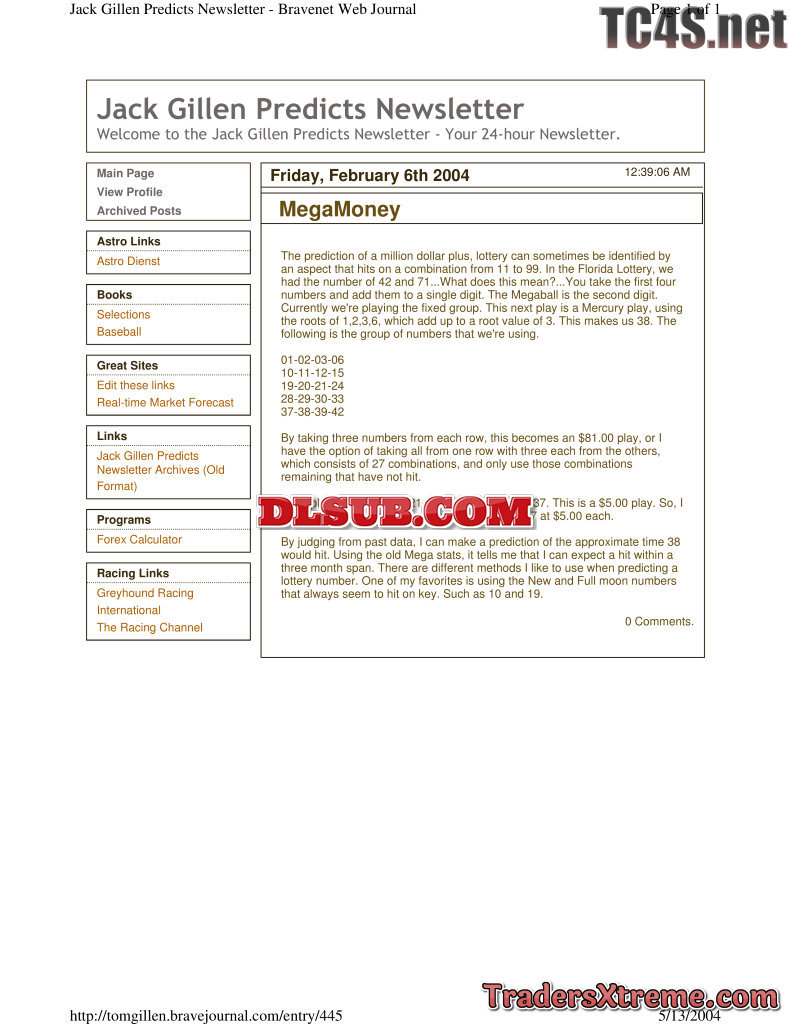 Jack Gillen Lottery Predictions