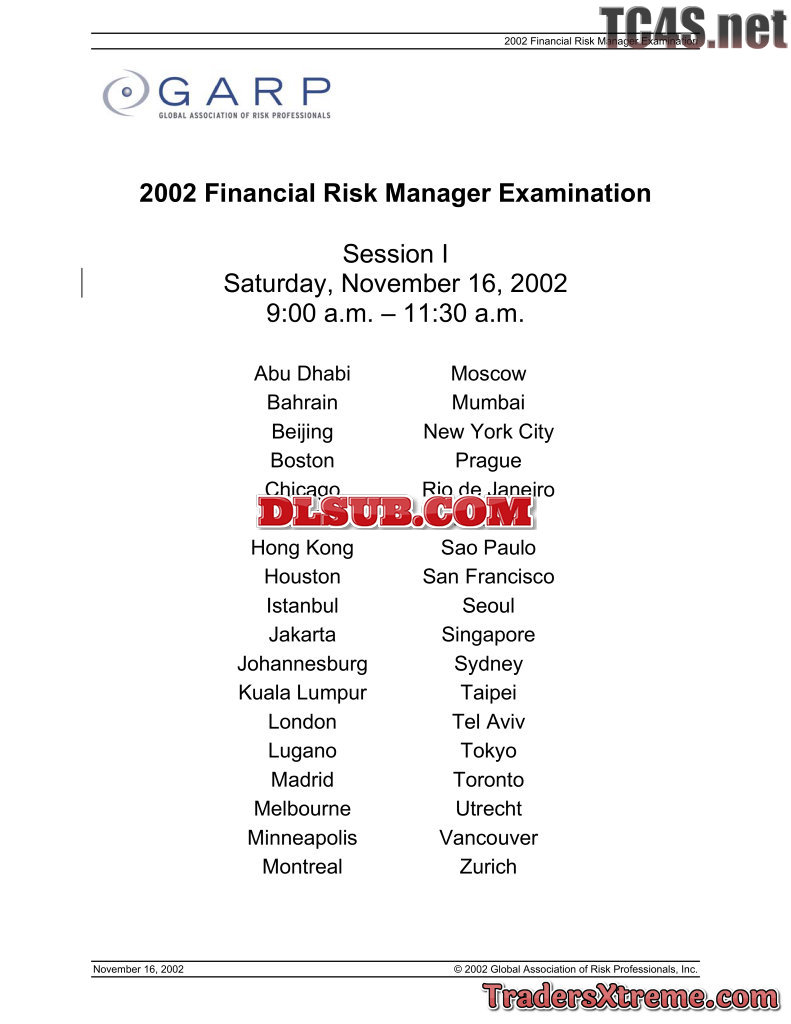 2002 Financial Risk Manager Examination By Garp - JPG Image File