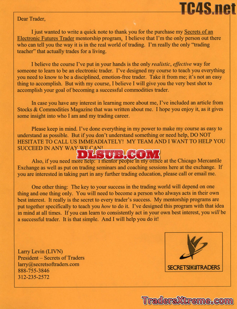 Larry Levin Secrets To Emotion Free Trading Manual Secretsoftraders