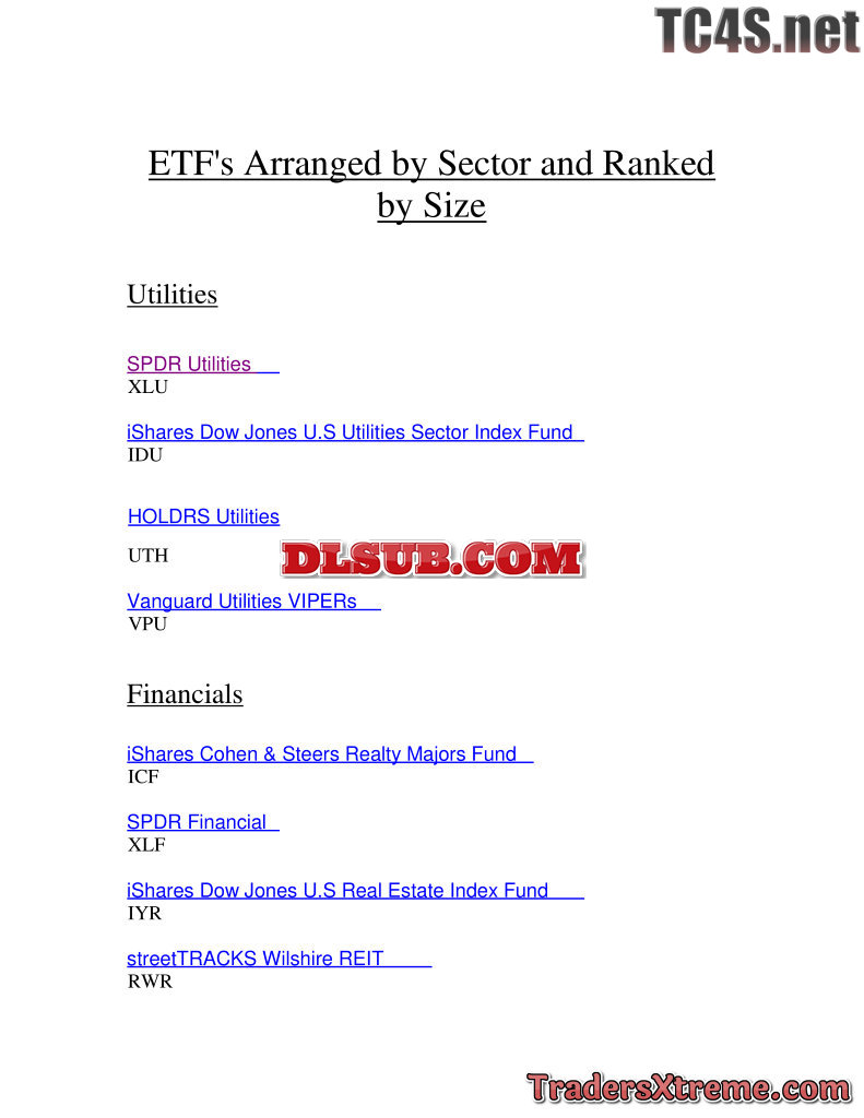 Etfs Arranged By Sector And Ranked By Size - JPG Image File