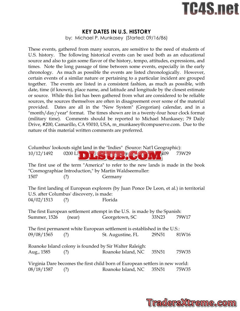 Michael Munkasey Key Dates In Us History